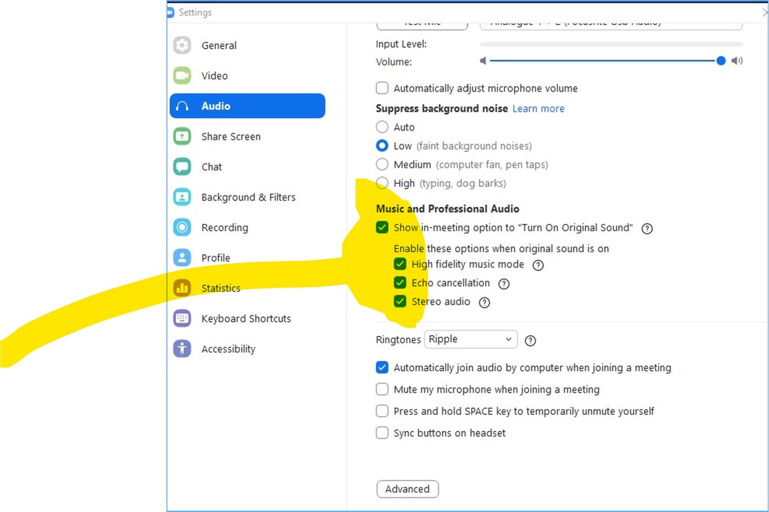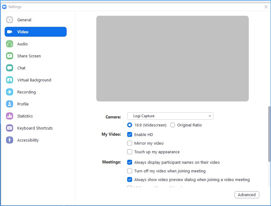 There are more settings in Zoom. Please go to the Zoom website for the many other options available.